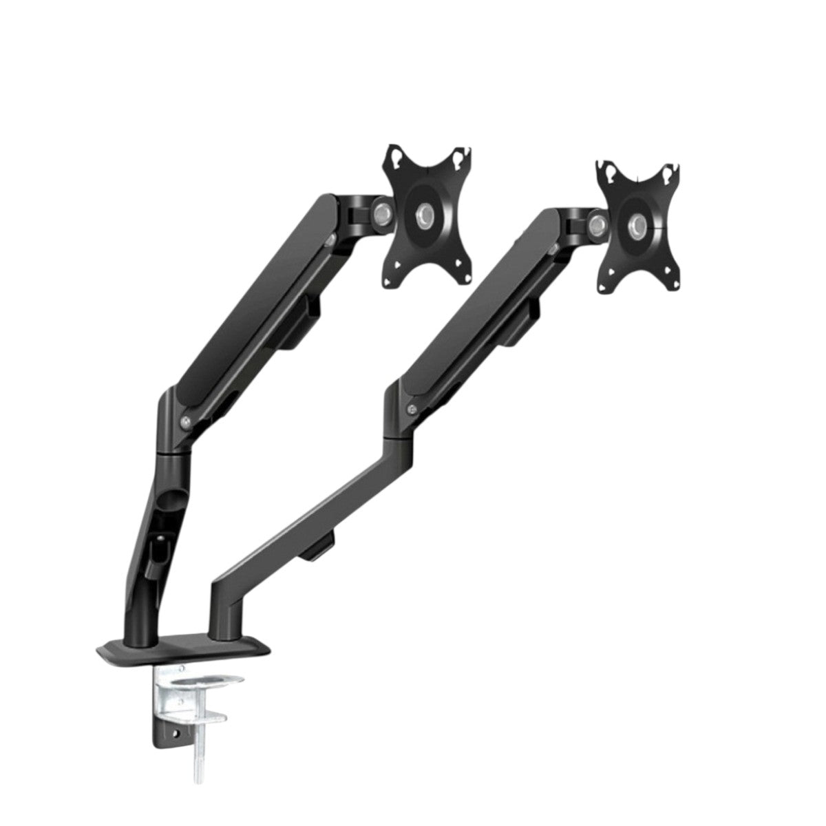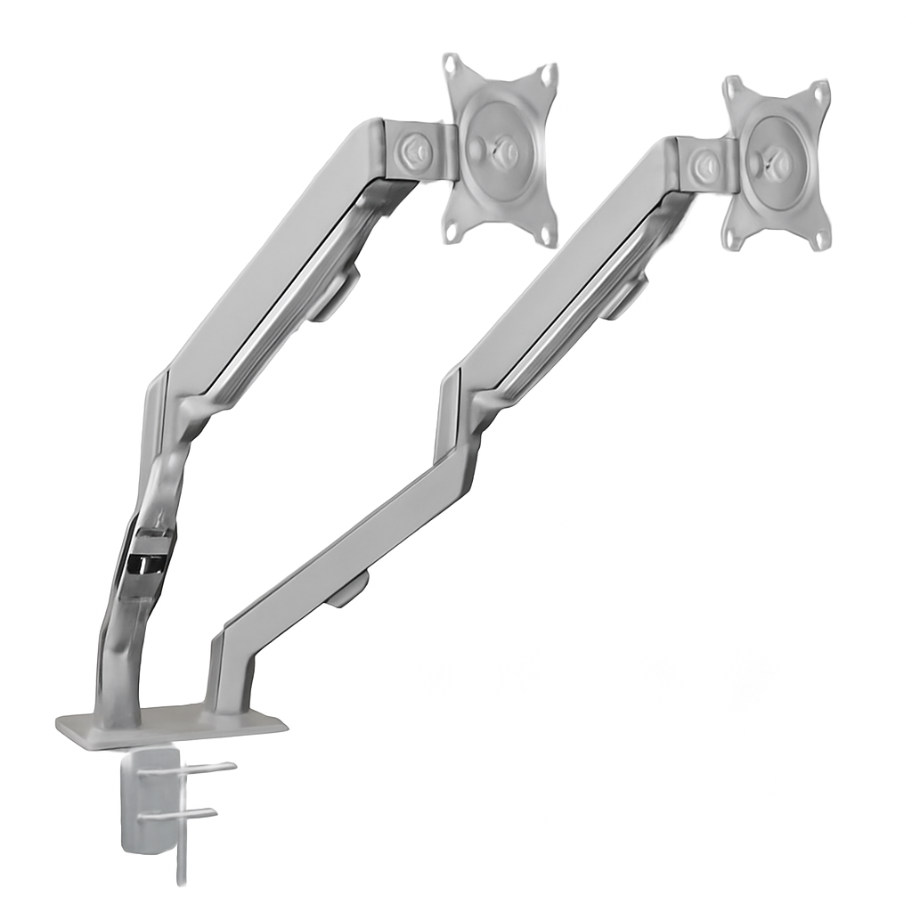 Le support double écran est conçu pour offrir une flexibilité maximale et un confort optimal dans les espaces de travail. Ce bras à gaz permet de monter deux écrans de 17 à 30 pouces et offre un pivotement à 360° ainsi qu’une inclinaison de +90° à -45°. Avec une capacité de charge de 2 à 9 kg, il est parfait pour les environnements de travail nécessitant des ajustements fréquents. Compatible avec les normes VESA 75x75 mm et 100x100 mm, ce support est facile à installer grâce à sa fixation sur le bureau. Disponible en noir, blanc ou gris, il s’intègre facilement à votre espace de travail.